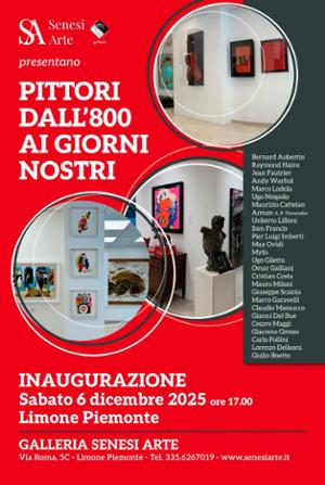 Limone Piemonte ospita, nei locali dell'ex Banca Popolare di Novara, la mostra di pittori dall'800 ai giorni nostri. Promossa dall’Associazione culturale Ego Bianchi e dalla Galleria Senesi Arte di Cuneo, resterà aperta tutti i giorni nelle vacanze di Natale e dal venerdì alla domenica fino a fine stagione (30 aprile), con orario dalle 10-12/15-18. Ingresso libero.