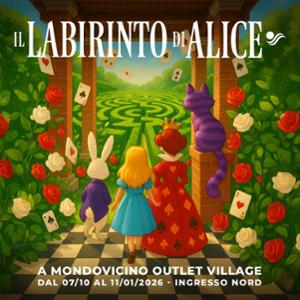 Dal 7 ottobre all’11 gennaio entra nel Labirinto di Alice nel Paese delle Meraviglie a Mondovicino Outlet Village. Un mondo incantato di corridoi verdi che si intrecciano come pagine di un racconto, incontri sorprendenti dietro ogni angolo e l’atmosfera magica del capolavoro di Lewis Carroll che prende vita. Attività gratuita aperta tutti i giorni dalle 10 alle 20, 24 dicembre dalle 10 alle 19, 31 dicembre dalle 10 alle 18, chiuso il 25 dicembre e 1°gennaio.