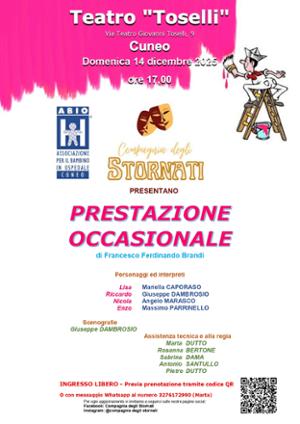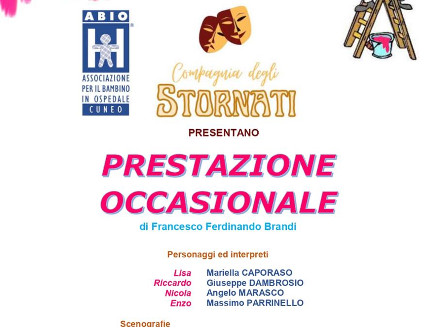 Domenica 14 dicembre, alle ore 17 presso il Teatro Toselli di Cuneo la “Compagnia degli Stornati” in collaborazione con l’ABIO di Cuneo ODV presenta la commedia brillante in due atti “Prestazione occasionale” di Francesco Brandi. Ingresso libero con prenotazione obbligatoria.