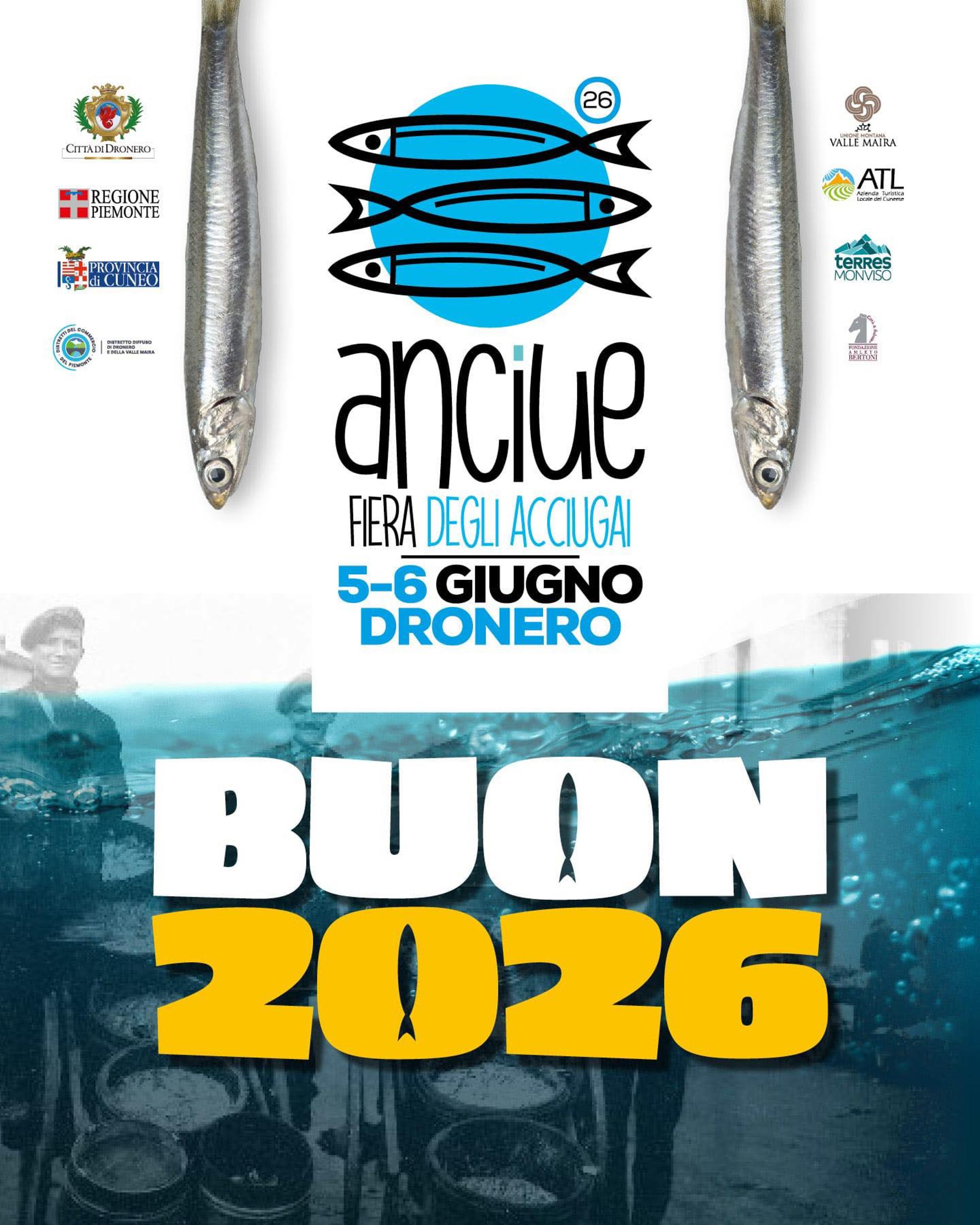Dronero il 5 e 6 giugno 2026 organizza la Fiera degli Acciugai. La manifestazione affonda le radici dall'antica tradizione montana, raccontando un mondo che ha ancora tracce vive in valle Maira, tra sapori, natura e tutta la cultura Occitana. La Piazza dei balocchi, l’Artigianato, lo street Food, la formazione, il Mulino: Dronero sarà una mappa di luoghi da raggiungere e dove fare o ascoltare, acquistare o assaggiare.