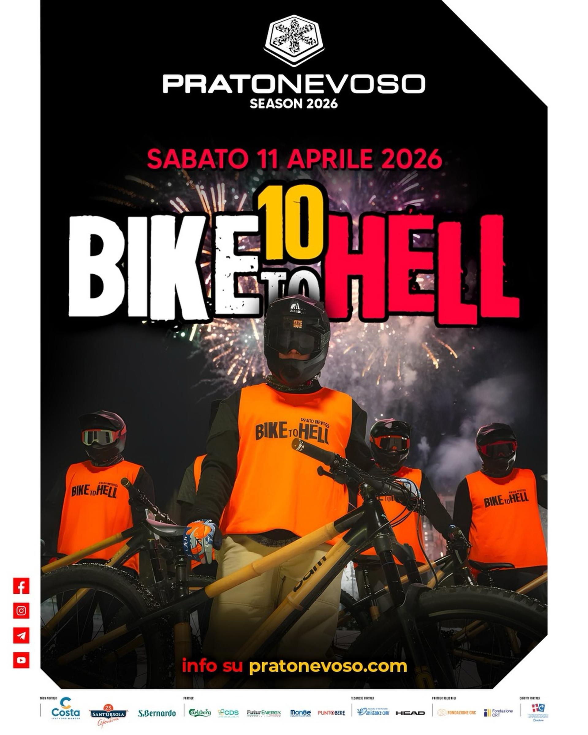 Adrenalina pura e divertimento si fondono nell’evento più originale della stagione: “Bike to Hell” vi aspetta sabato 11 aprile a Prato Nevoso. La gara di downhill sulla neve che ogni anno attira ciclisti da tutta Italia, giunta alla sua decima edizione. I partecipanti, in sella alle loro mountain bike, si lanceranno lungo le piste innevate della stazione sciistica, affrontando una discesa che mette alla prova non solo le capacità tecniche, ma anche il coraggio. Clicca qui per iscriverti.
