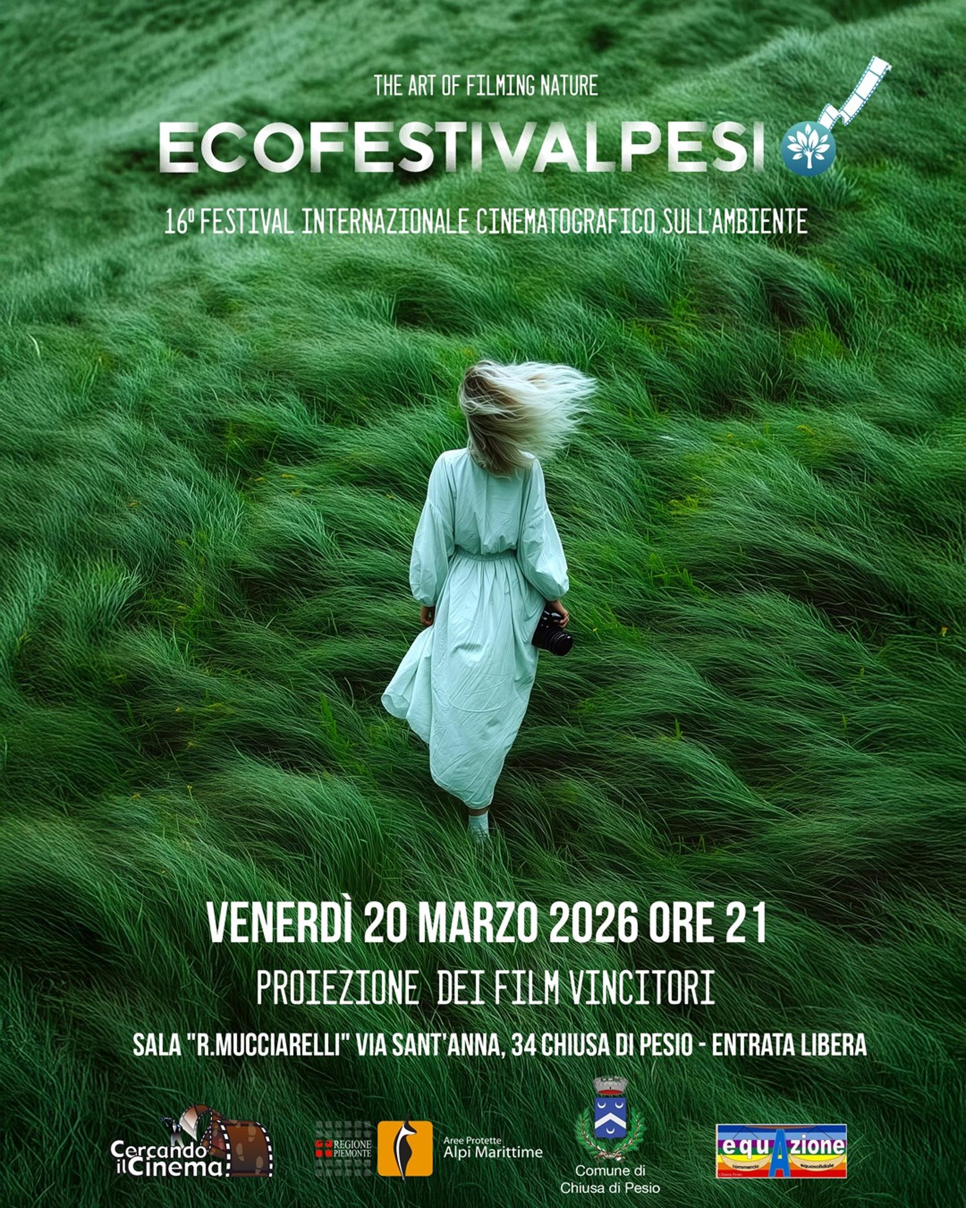 L'associazione "Cercando il Cinema APS" organizza, dal 17 al 20 marzo 2026, la sedicesima edizione dell'Ecofestivalpesio, il concorso cinematografico che porta sullo schermo biodiversità, ambiente e giustizia sociale, in collaborazione con il Comune di Chiusa di Pesio, l'Istituto Comprensivo di Chiusa di Pesio-Peveragno, l'Ente di gestione delle Aree Protette Alpi Marittime e con il patrocinio della Regione Piemonte e della Provincia di Cuneo.