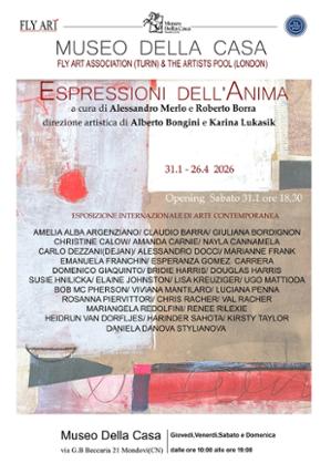 Dal 31 gennaio al 26 aprile il Museo Della Casa ospita la mostra “Espressioni dell’Anima”, un percorso che racconta emozioni, identità e interiorità attraverso l’arte. La mostra, curata da Alessandro Merlo e Roberto Borra propone le opere di circa 30 artisti.