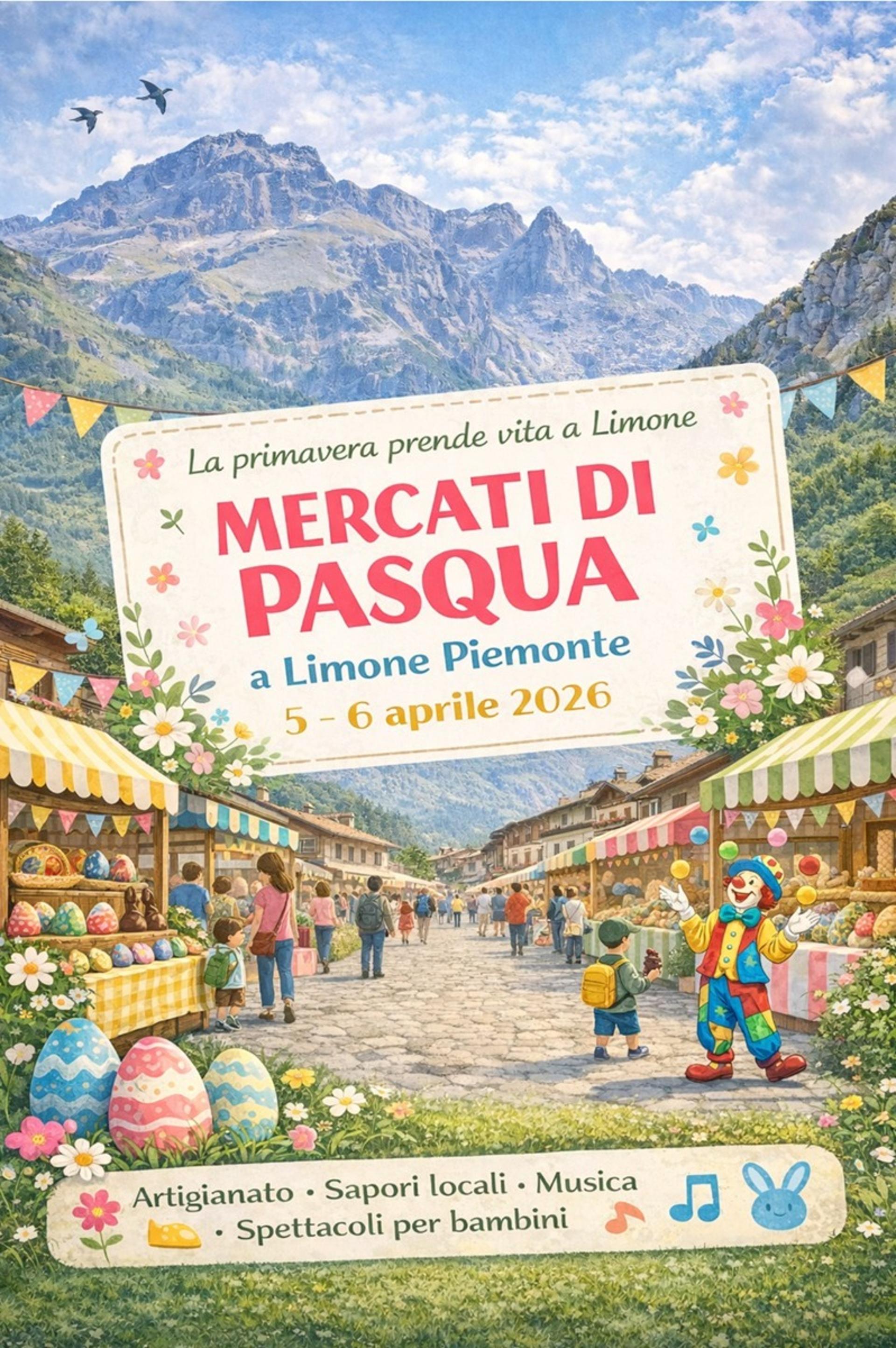 Domenica 5 e lunedì 6 aprile, in occasione di Pasqua, a Limone Piemonte è organizzato un mercatino dell'artigianato e sapori locali allietato da musica e spettacoli per bambini. La due giorni si svolgerà in via Roma, la zona pedonale, indicativamente dalle 8 alle 19. Ingresso libero.