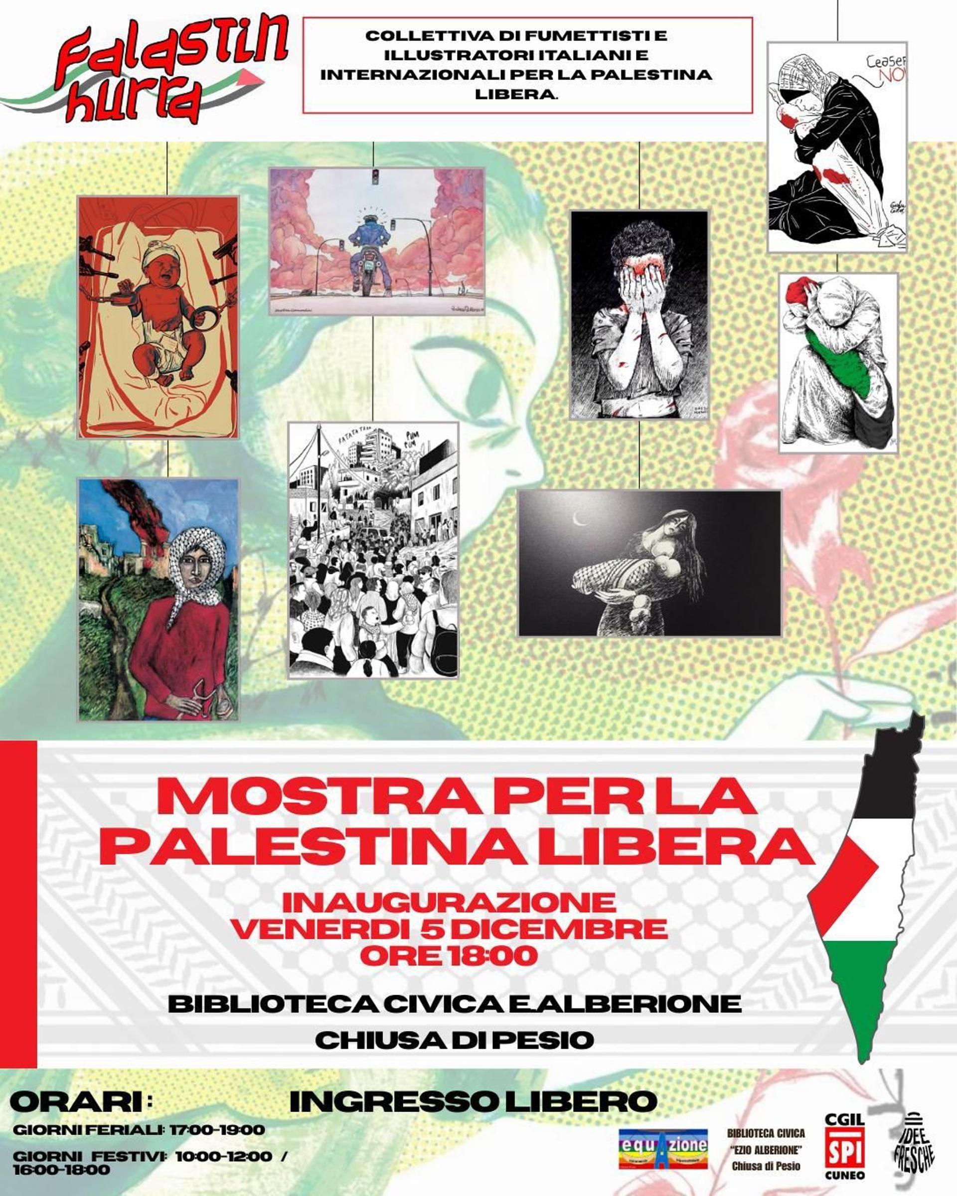 Dopo aver fatto tappa a Napoli, Torino e Cuneo, dal 5 al 14 dicembre la Biblioteca Civica "E. Alberione" di Chiusa di Pesio ospita la mostra "Falestin Hurra 2.0 – From Strip to Motion".