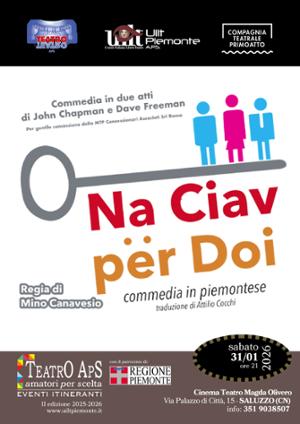Sabato 31 gennaio, alle ore 21.00, presso il Teatro Magda Olivero di Saluzzo, nell'ambito della Rassegna Teatro APS Amatori Per Scelta organizzata da Uilt Piemonte, la Compagnia Teatrale Primoatto APS insieme al Gruppo Teatro Carmagnola APS andrà in scena con lo spettacolo "Na ciav per doi". Regia di Mino Canavesio, traduzione di Attilio Cocchi.