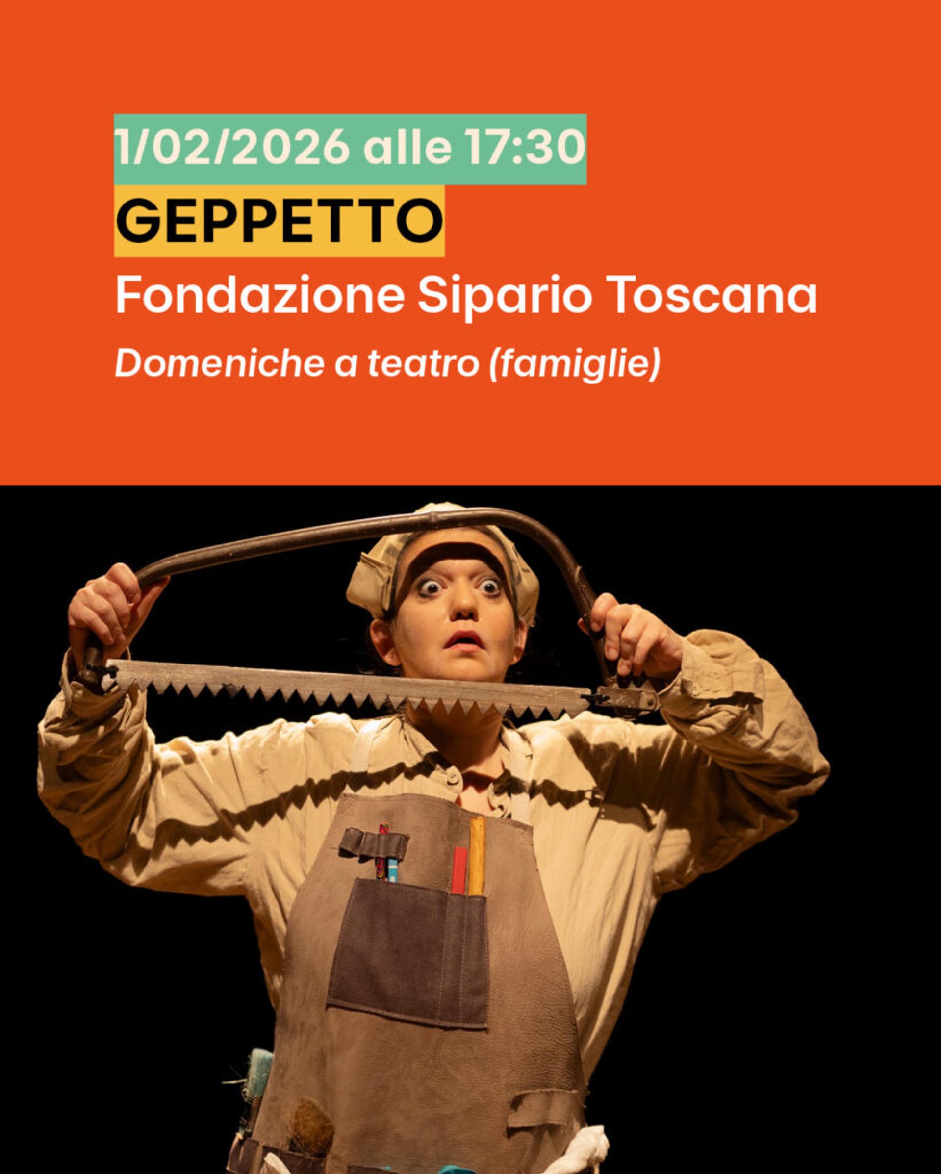 Rileggere la fiaba di Pinocchio attraverso la figura di Geppetto, in una celebrazione del mestiere di falegname e della sua capacità di trasformare il legno in materia viva. Geppetto, si sa, è un falegname povero che sogna di avere un figlio e decide di costruirselo. In un ambiente bottega il nostro Geppetto intaglia parole come trucioli, semplici attrezzi da lavoro e piccole invenzioni quotidiane, che offriranno suggestioni per seguire il racconto.