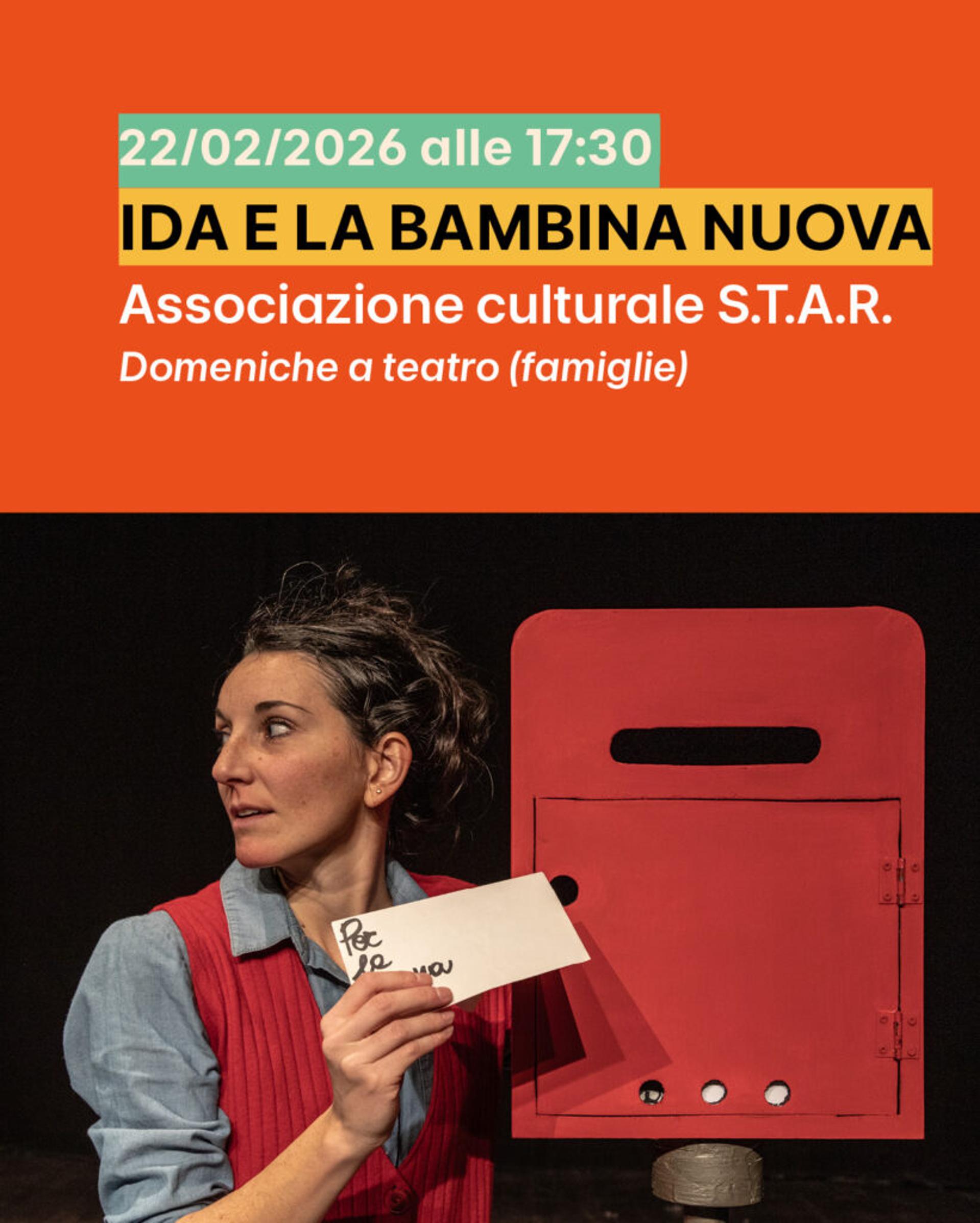 Domenica 22 febbraio alle 17.30 a Cuneo, presso l'ex chiesa di Santa Chiara (via Savigliano), vi aspetta un nuovo spettacolo della rassegna "Domeniche a teatro", dedicata alle famiglie: "Ida e la bambina nuova", dell'Associazione culturale S.T.A.R. Una storia che stimola il coraggio di cercare sempre le proprie parole, quelle che nascono dentro, anche quando è difficile dirle, anche quando si trovano sul sentiero più lungo. Il programma completo della rassegna è disponibile sul sito ufficiale.