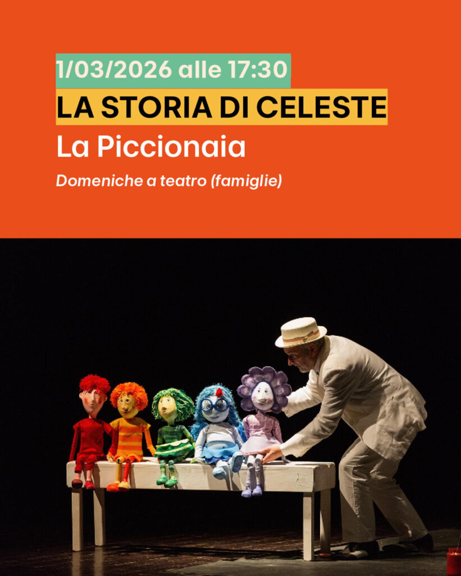 Domenica 1 marzo alle 17.30 a Cuneo, presso l'ex chiesa di Santa Chiara (via Savigliano), andrà in scena "La storia di Celeste", del centro di produzione teatrale "La Piccionaia". Lo spettacolo ha come protagonisti i colori dell'arcobaleno ed esplora con semplicità i temi della diversità, dell'inclusione e dell'integrazione. Il programma completo della rassegna è disponibile sul sito ufficiale.