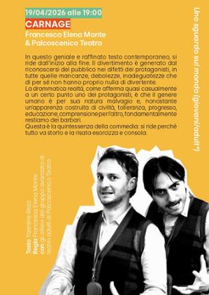 Da venerdì 17 a domenica 19 aprile a Cuneo l'Officina Santachiara ospita tre spettacoli a cura di Francesca Elena Monte, scritti e interpretati dagli allievi e allieve dei corsi avanzati di teatro, a conclusione della ricca rassegna invernale: "Le lupe" (17/04), “PhoebusKartell” (18/04) e "Carnage" (19/04). Tutti e tre gli eventi si svolgeranno alle 19.00, nell'ex chiesa di Santa Chiara (via Savigliano).