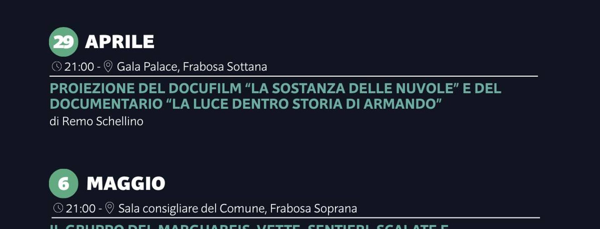 Mercoledì 22 aprile alle ore 21.00 al Teatro dell’oratorio don G.B. Terreno di Pianfei si salirà idealmente in quota con “Quattro amici a seimila metri nelle valli dell'Everest”, con Simone Benedetto, Giuliano Biga, Ettore Rovella e Enrico Piovano. L'evento fa parte della rassegna di serate culturali "Università del Mondolè", organizzata dall'Unione Montana Mondolè. Ingresso libero.