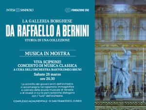 A chiusura della mostra "La Galleria Borghese. Da Raffaello a Bernini. Storia di una collezione" la musica è chiamata a far rivivere col linguaggio che le è proprio i colori, le atmosfere, le forme, le suggestioni create dalle opere esposte. Lo farà sabato 28 marzo, alle ore 20.30 presso il Complesso Monumentale di San Francesco a Cuneo, attraverso un concerto dei giovani archi dell’Orchestra B. Bruni della Città di Cuneo. Evento gratuito con prenotazione obbligatoria.