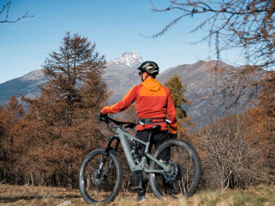 In leggera salita, compirai un anello su un bellissimo sentiero panoramico, arricchito da bacheche informative sulle specie floreali esistenti. Man mano che pedalerai la pendenza si attenuerà e giungerai nella zona di un gigantesco bosco di pino silvestre purtroppo gravemente danneggiato da un incendio nel 1990. Da qui, si scende leggermente e si incrocia alla propria sinistra un pilone dedicato alla Madonna con rupe posteriore da cui la foto è immancabile. Prosegui in discesa, la pendenza aumenta ma il fondo è perfetto e al bivio segui le tacche gialle dei percorsi occitani, fino a giungere a “case Caricatori”.