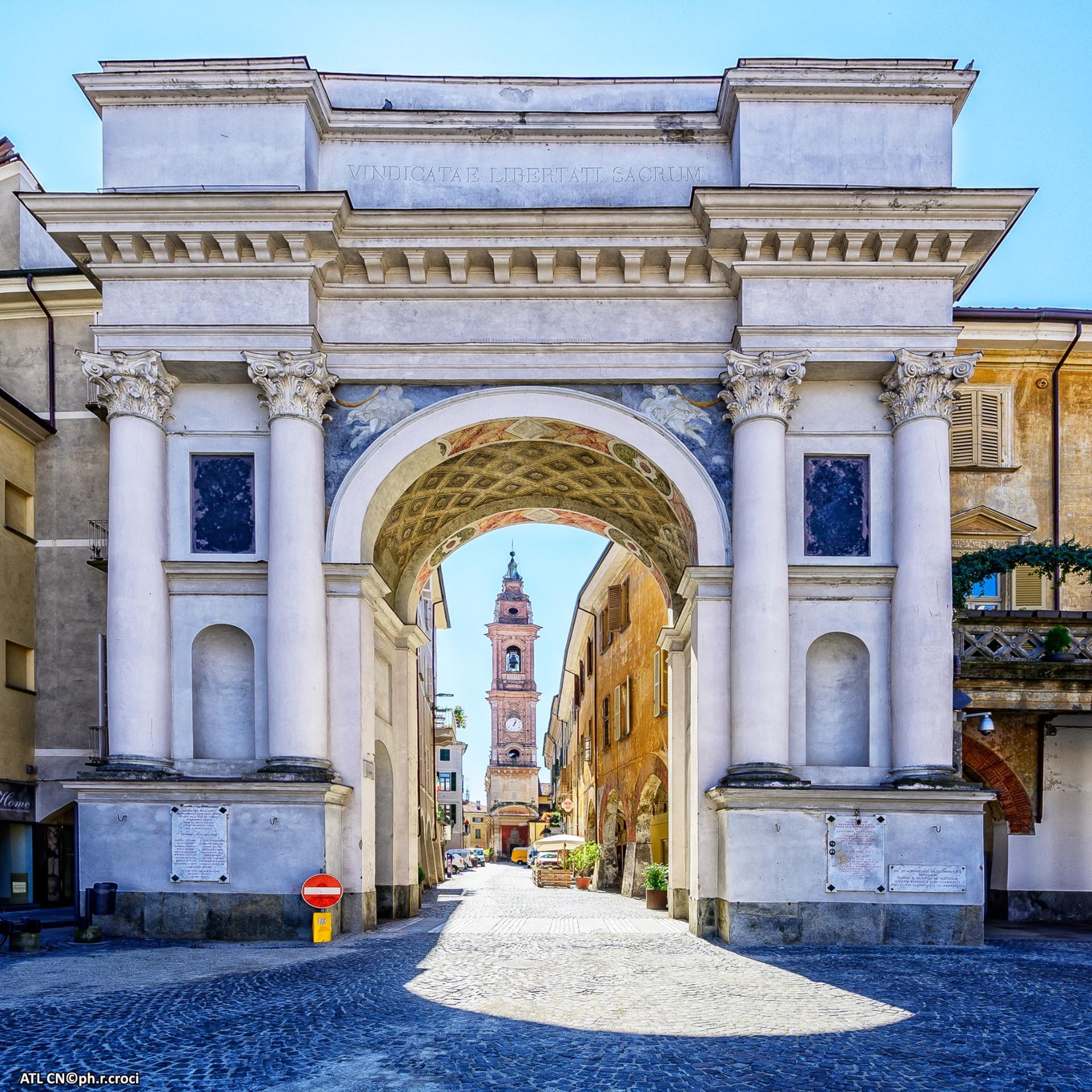 Das pulsierende Herz der mitten in den so genannten Terre dei Savoia, den savoyischen Ländereien, gelegenen Stadt ist die Piazza Santa Rosa, einer der besterhaltenen mittelalterlichen Plätze Italiens. Hier erheben sich der stattliche Stadtturm, der Triumphbogen aus dem 16. Jahrhundert und das Santorre di Santa Rosa gewidmete Denkmal. Nach dem adligen Patrioten und Revolutionär des italienischen Risorgimento ist der Platz benannt. Unter dessen Laubengängen reihen sich Cafés, elegante Lokale und Geschäfte aneinander, die von der Atmosphäre der Stadt geprägt sind. In einem charakteristischen, schmiedeeisernen Kiosk befindet sich das städtische Fremdenverkehrsamt.