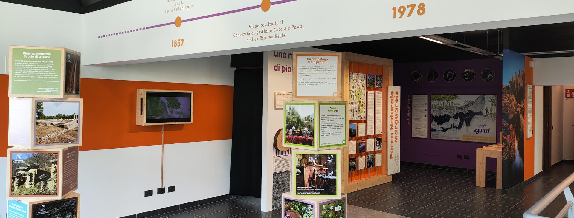 Die andere Hälfte des Erdgeschosses stellt mit Fotos und einer großen Karte das Gebiet der Schutzgebiete der Seealpen und die beiden darin enthaltenen Naturparks vor. Durch einen tosenden "virtuellen Wasserfall" und eine von einem Wandgemälde mit Landschaften und Tieren des Parks verzierte Treppe gelangen die Besucher in das Obergeschoss. Dort können Gäste jeden Alters Flora, Fauna, Gesteine und das Erdinnere der Seealpen und des Marguareis entdecken.