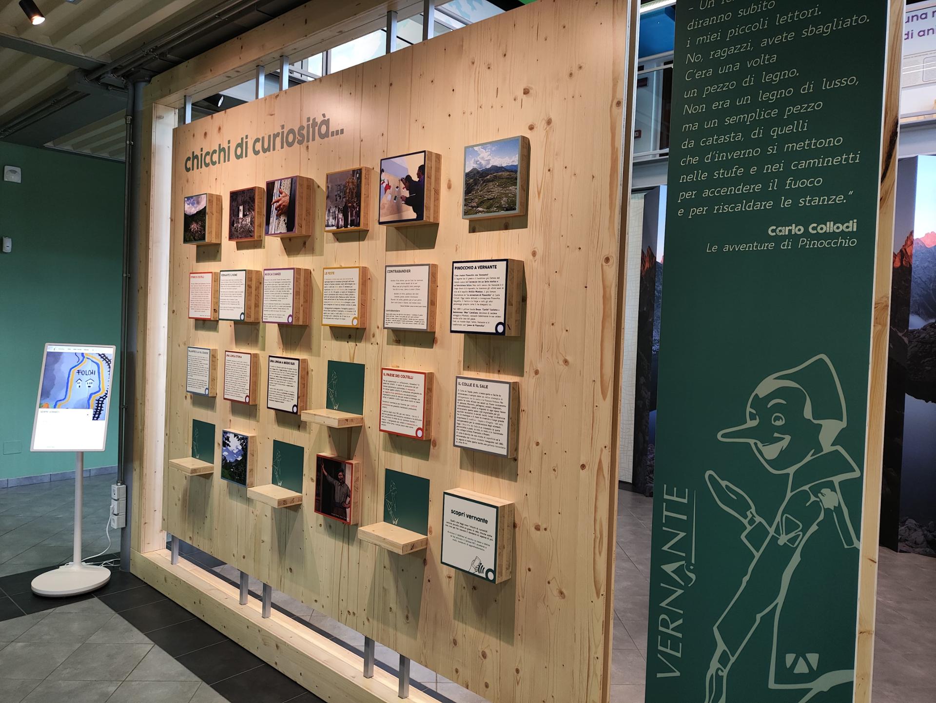 Dieser Bereich ist der Entdeckung der Region Vernante gewidmet. Ein freundliches Informationszentrum bietet Auskünfte und kostenloses Infomaterial. Die Ausstellung umfasst einen Bereich namens "Körner der Neugier", der dazu anregen soll, das reiche lokale Erbe an Geschichte, Kultur, Musik und Handwerk zu vertiefen. Fotos und kurze Texte werden durch NFC-Geräte ergänzt, die mit dem Mobiltelefon aktiviert werden können. Ergänzt wird der Bereich durch einen Shop mit Veröffentlichungen und Souvenirs sowie eine 3D-Station, an der man die Geschichte von Pinocchio dreidimensional erleben kann.
