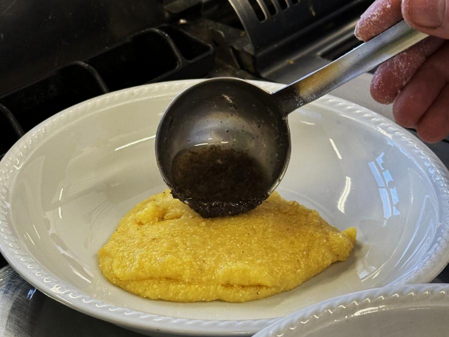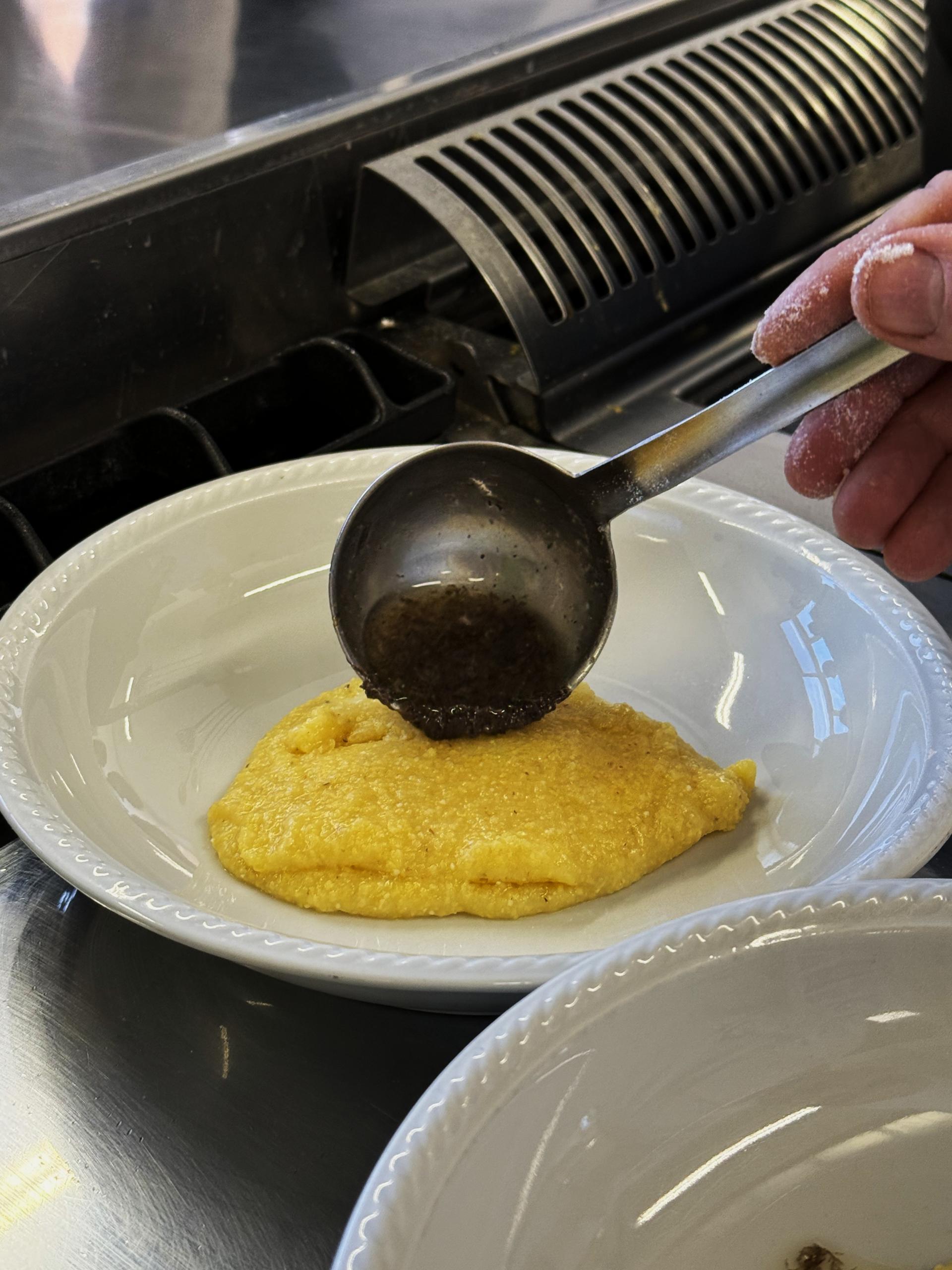 Presenta la polenta nelle fondine, aggiungendo a piacere un po’ di burro con il tartufo sfrigolante sopra.
