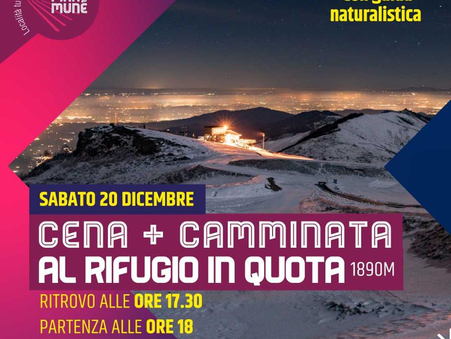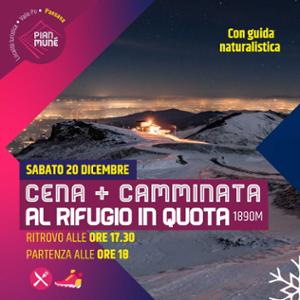 Sabato 20 dicembre, il Rifugio Pian Munè di Paesana organizza un'escursione guidata per un'esperienza unica al tramonto: natura, panorami spettacolari e una deliziosa cena in un rifugio d'alta quota. Ritrovo alle ore 17.30 e partenza alle ore 18.00. La quota di partecipazione è di 35 euro a persona.