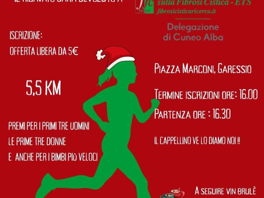 Il 21 dicembre Garessio si riempie di rosso con la corsa–camminata dei Babbi Natale, una non competitiva aperta a tutti. Un percorso di 5,5 km con iscrizione a offerta libera: il ricavato sarà devoluto alla Fondazione per la Ricerca sulla Fibrosi Cistica.