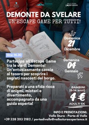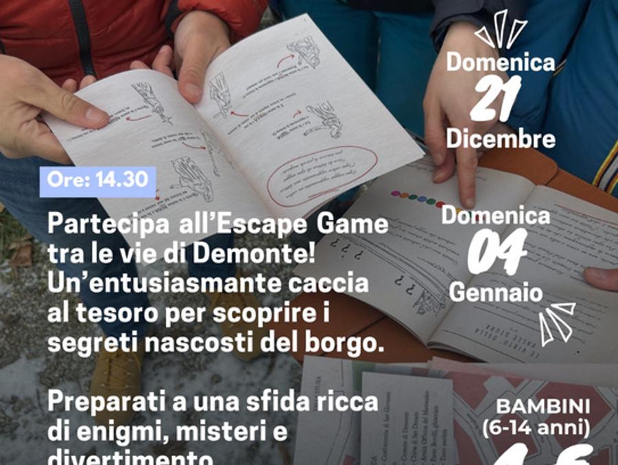 Domenica 21 dicembre e domenica 4 gennaio, a partire dalle ore 14,30 a Demonte (ritrovo presso la Biblioteca Civica), vi attende un'entusiasmante caccia al tesoro per scoprire i segreti nascosti del borgo.