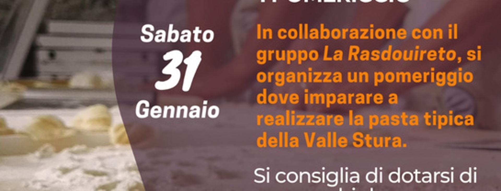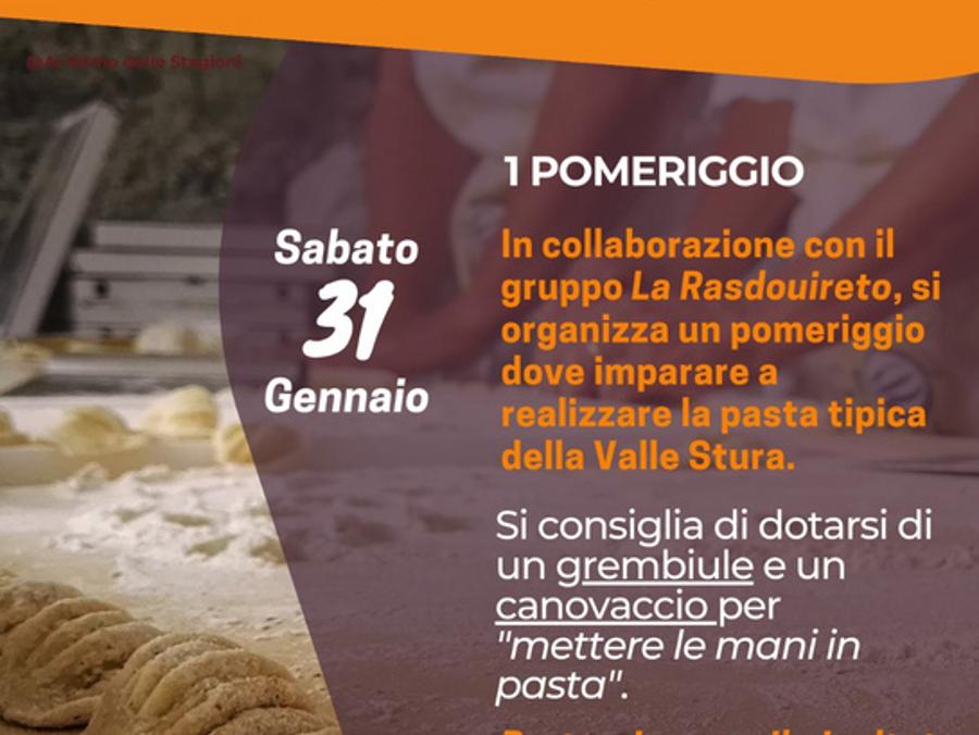 Preparati a mettere le mani in pasta! In collaborazione con il Gruppo La Rasdouireto, ti aspetta un pomeriggio speciale dedicato ai Crouset, la pasta tipica della Valle Stura. Sotto la guida delle mastre pastaie di Vinadio, scoprirai segreti, gesti antichi e tradizioni che si tramandano da generazioni. Un laboratorio pratico, autentico e super divertente: porta solo grembiule e strofinaccio. E alla fine del corso porterai a casa i Crouset preparati da te, pronti per essere cucinati e condivisi con chi ami. Costo: 25 € a partecipante.