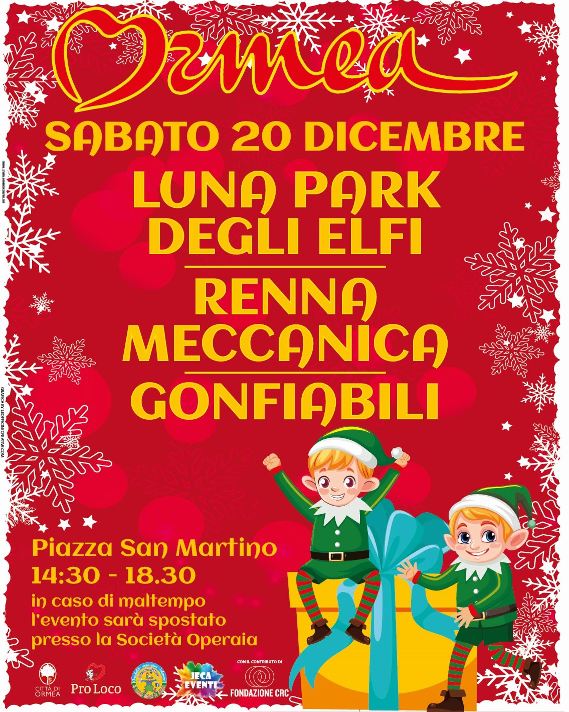 Sabato 20 dicembre, dalle ore 14.30 alle ore 18.30, "Luna Park degli Elfi" con la Renna meccanica ed i gonfiabili, in piazza San Martino.