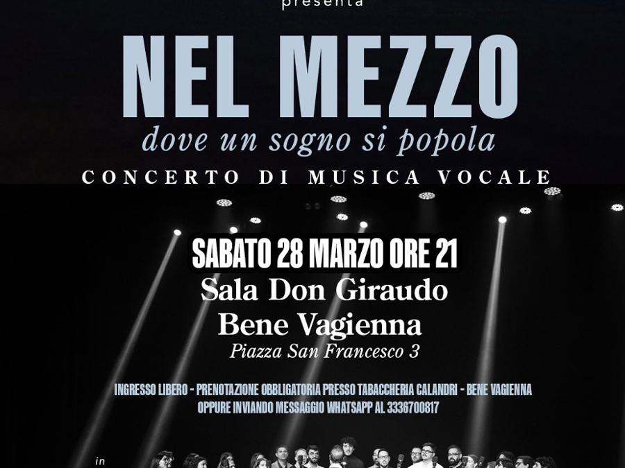 Sabato 28 marzo alle ore 21.00, presso la Sala Don Giraudo in Piazza San Francesco 3 a Bene Vagienna, si terrà Nel Mezzo – dove un sogno si popola, concerto di musica vocale con il Coro della Diocesi di Mondovì. Lo spettacolo propone un percorso musicale dedicato alla vocalità contemporanea, con un repertorio che attraversa generi e suggestioni diverse, valorizzando l’energia e l’armonia del canto corale.