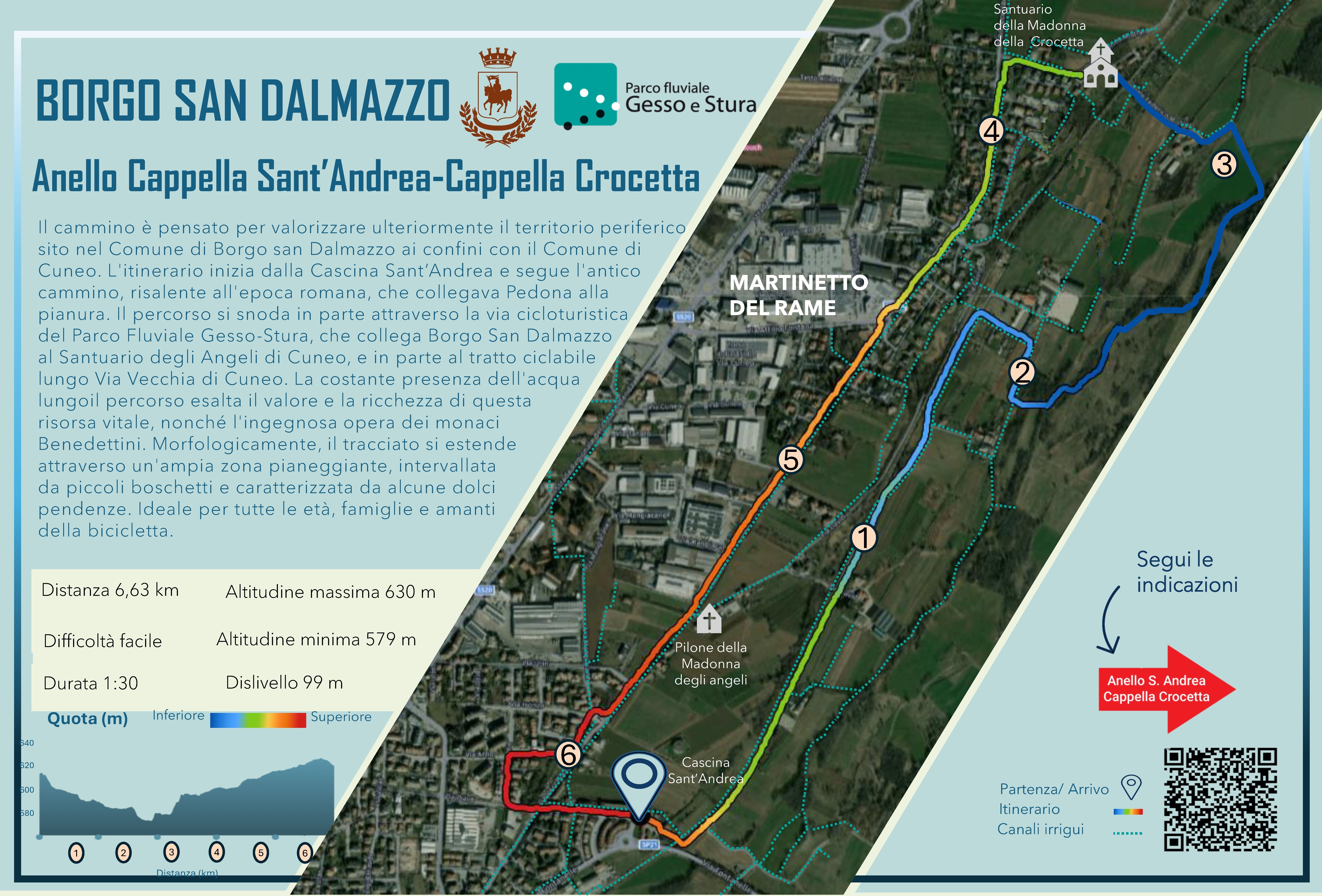 Percorso ciclo-escursionistico ad anello delle cappelle di Sant’Andrea e Crocetta con alcuni spunti interessanti dal punto di vista culturale, ambientale e turistico in un’area periferica della città di Borgo San Dalmazzo.