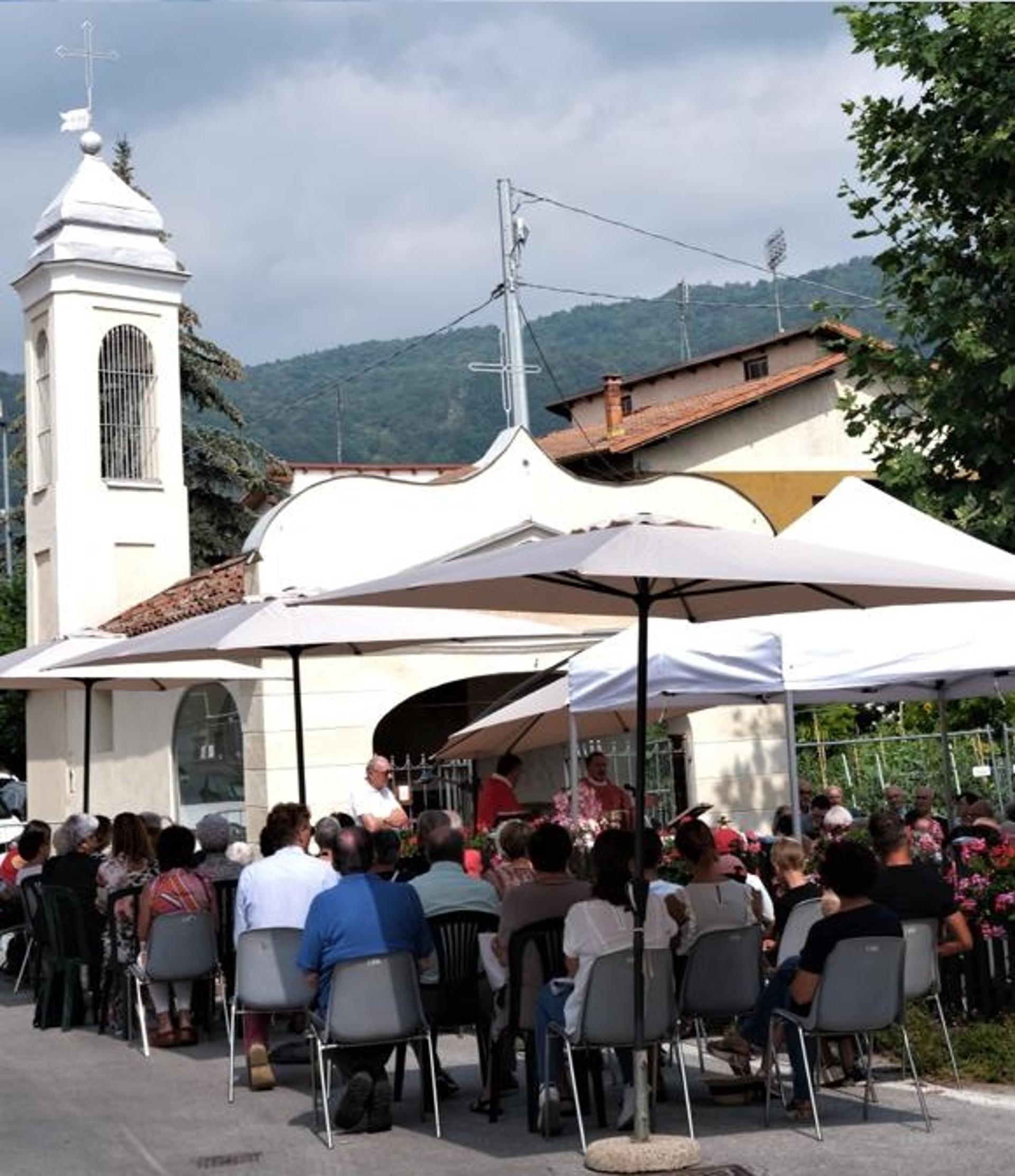 L’edificio quattrocentesco, recentemente restaurato, nonostante le piccole dimensioni ebbe molta frequentazione. In epoca seicentesca venne aggiunto l’altare e una grande balconata per l’organo. In origine l’ingresso alla chiesetta avveniva attraverso un’ampia apertura ad arco acuto, la cui traccia è ben visibile oggi dopo le prime ristrutturazioni. Per l’affluenza della popolazione, tra il Settecento e l’Ottocento l’edificio venne ampliato con l’aggiunta di un portico antistante la facciata, di gusto romantico. L’interno a pianta quadrata è coperto con volta a crociera.