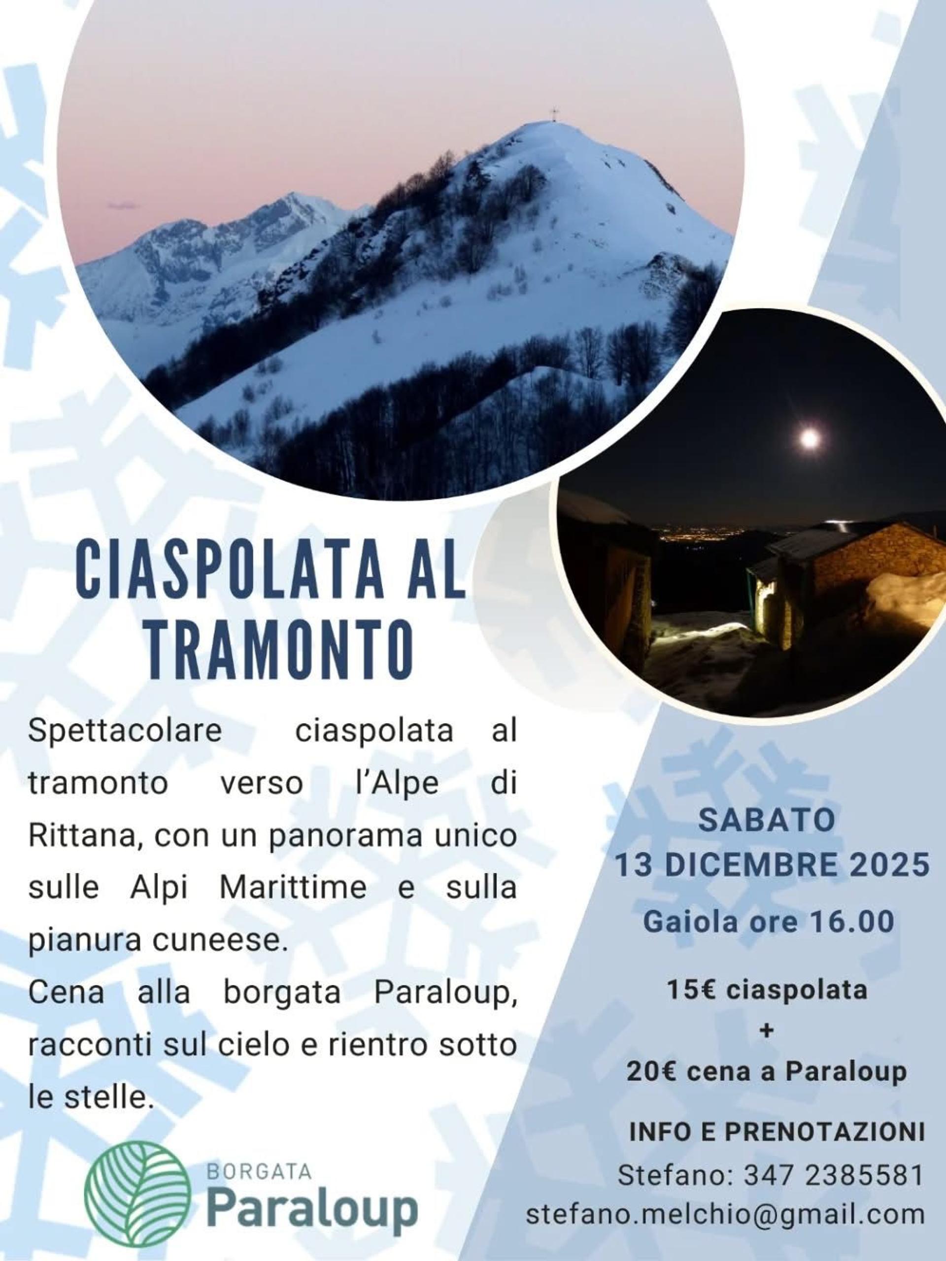 Il percorso condurrà i partecipanti fino alla storica borgata Paraloup, un luogo simbolo della Resistenza partigiana, oggi recuperato come centro culturale e turistico che offre un'esperienza comunitaria e sostenibile. Qui, i ciaspolatori potranno rifocillarsi con una cena in borgata, un momento conviviale. La serata si concluderà con il rientro a valle, illuminato unicamente dalle fiaccole e dalla luce della luna e delle stelle, trasformando il cammino in un vero e proprio viaggio onirico.