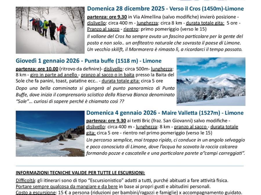 Domenica 28 dicembre 2025 ciaspolata con la guida escursionistica Monica Dalmasso verso il Cros (1450 m). Partenza ore 9.30 da Limone.