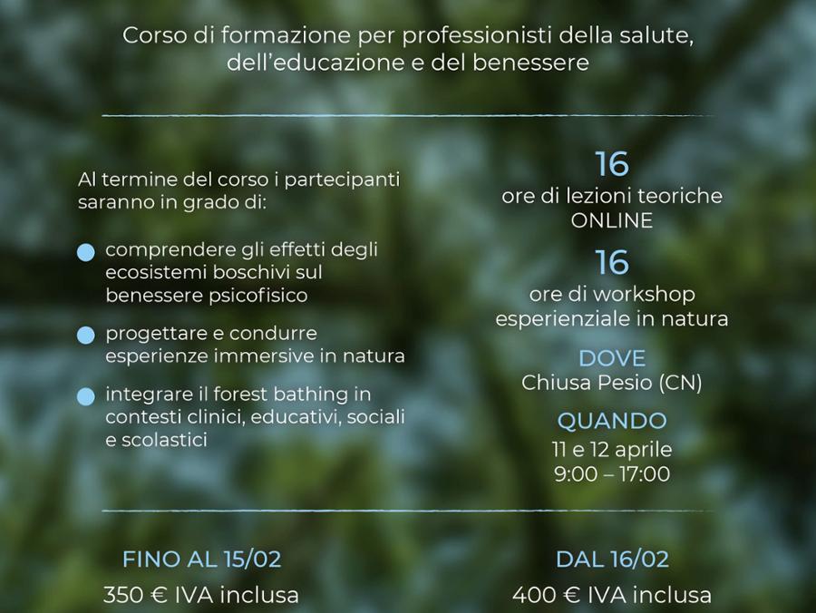 integrare le pratiche di forest bathing nel proprio ambito professionale (clinico, educativo, sociale, scolastico…).
