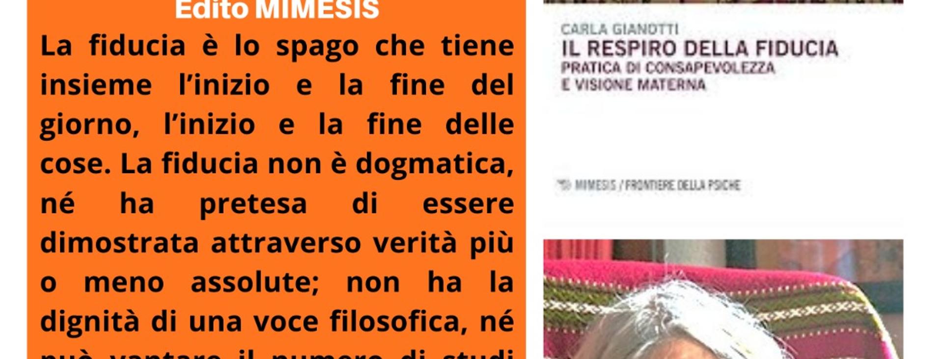 La fiducia è lo spago che tiene insieme l'inizio e la fine del giorno, l'inizio e la fine delle cose. La fiducia non è dogmatica, né ha pretesa di essere dimostrata attraverso verità più o meno assolute; non ha la dignità di una voce filosofica, né può vantare il numero di studi che conta invece il concetto di fede. Non ha schierato eserciti, né in suo nome sono stati condotti guerre o massacri. 'Fiducia' è parola pudìca e sempre giovane, che inizia ogni giorno, che si rinnova nel qui e ora, perché da sempre c’è bisogno di fiducia per cominciare il giorno e continuarlo... Fiducia è apertura all'attesa che sono/che siamo, all'infinito di esistenza possibile. La fiducia si dà tempo, conosce l'attesa e, nel tempo dell'attesa, lavora di opera. Conosce fatica. La sfiducia non fatica, ma è faticosa, questo sì, bagaglio portato appresso, ingombrante di peso e senza futuro. Né debole oppure buonista, né mansueta o passiva, la fiducia è determinata e coraggiosa, tenace e pronta di azione, è da sempre archetipicamente femminile e materna.