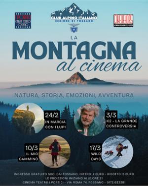 Dal 24 febbraio al 17 marzo presso il Cinema Teatro I Portici di Fossano: La Montagna al Cinema - "Natura, Storia, Emozioni, Avventura”. Ritorna la rassegna in collaborazione con la sezione CAI di Fossano. Un itinerario di quattro film che racchiude nel sottotitolo stesso l'anima della montagna, proiettata sul grande schermo.