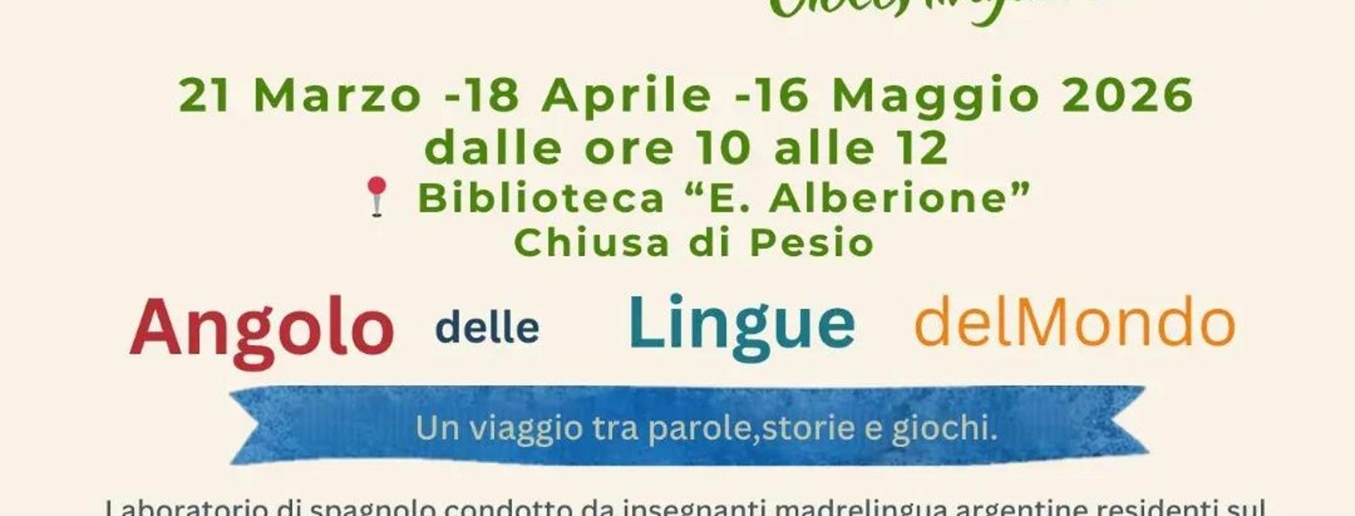 Sabato 21 marzo, 18 aprile e 16 maggio dalle ore 10.00 alle 12.00 presso la Biblioteca civica "E. Alberione" laboratori di spagnolo per bimbi e ragazzi dai 3 ai 12 anni.