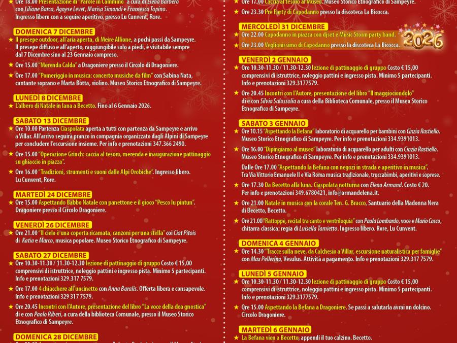 A Sampeyre vi aspettano numerosi eventi da non perdere fino al 10 gennaio. Prossimi appuntamenti di seguito.