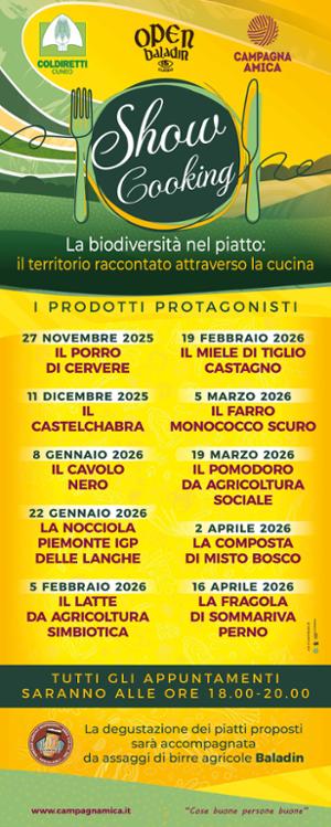 Ogni incontro, fino all’aprile 2026, sarà dedicato a un prodotto simbolo della biodiversità contadina, presentato da un’azienda agricola di Campagna Amica. Il calendario spazia da produzioni tipiche e identitarie a specialità di nicchia, coltivate e custodite con impegno da generazioni di agricoltori: dal Porro di Cervere al Castelchabra, dal Cavolo Nero alla Nocciola Piemonte IGP delle Langhe, dal latte da agricoltura simbiotica al miele di tiglio-castagno, fino al farro monococco scuro, al pomodoro da agricoltura sociale, alla composta di misto bosco e alla fragola di Sommariva Perno. Grazie ai racconti dei produttori agricoli, i partecipanti potranno immergersi in un viaggio attraverso montagne, colline e pianure della Granda, scoprendo aneddoti curiosi, pratiche agricole sostenibili e ricette da riproporre a casa. Come sempre, lo chef realizzerà in diretta piatti dedicati al prodotto protagonista della serata, da gustare in abbinamento a birre agricole Baladin, nel segno della valorizzazione dell’eccellenza brassicola italiana.