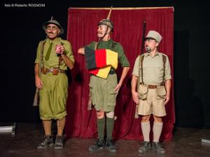Ci sono un tedesco, un americano e un italiano. Sembra l’inizio di una barzelletta, ma questa è una storia vera. Tre clown-soldati, reduci di tutte le guerre della storia, arrivano per innalzare un monumento ai caduti di ogni guerra e ricordare quanta stupidità c’è stata. Ma se sono proprio loro a ricadere nel vizio che denunciano? Allora si confonde tutto e si finisce a ridere della stupidità della stupidità. Tra gags classiche, divertenti e sorprendenti, fraintendimenti e tradimenti, si guarda con i nostri occhi di sempre l’ingenuità dei clown e la debolezza dell’uomo, per ridere di entrambi in uno spettacolo e per ripensarci tornando a casa, magari davanti alla tv e al solito TG.