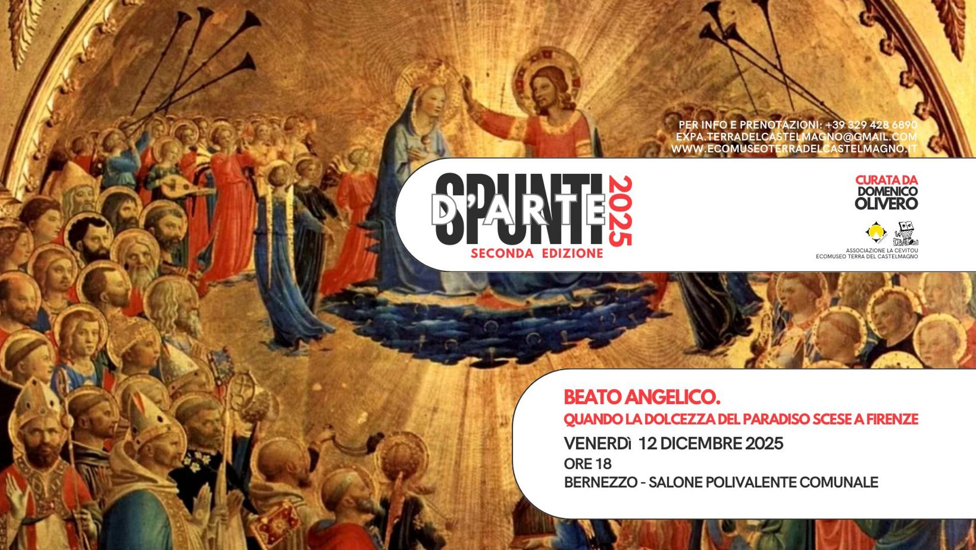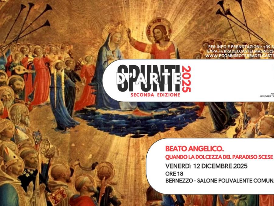 La rassegna “Spunti d’arte”, alla sua seconda edizione in Valle Grana, propone incontri mensili dedicati all’arte e alla cucina, curati da Domenico Olivero e organizzati dall’Associazione La Cevitou – Ecomuseo Terra del Castelmagno. Venerdì 12 dicembre 2025, a Bernezzo, alle ore 18.00 nel salone polivalente comunale, si terrà un aperitivo artistico nell’ambito del festival “Leggere le montagne”. Durante l’incontro, Domenico Olivero presenterà un approfondimento sul Beato Angelico e sul suo percorso artistico, seguirà un aperitivo con prodotti tipici della Valle Grana proposto dall’Ecomuseo. Ingresso gratuito, consigliata la prenotazione.