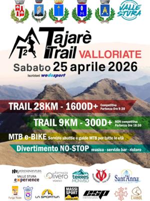 Sabato 25 aprile vi aspetta il Tajarè Trail di Valloriate: due percorsi di diversa lunghezza e dislivello (28 km da 1650 m D+, 9 km da 300 D+), con musica e servizio bar tutto il giorno, oltre a servizio shuttle e guide MTB per tutte le età. Iscrizioni aperte: clicca qui.