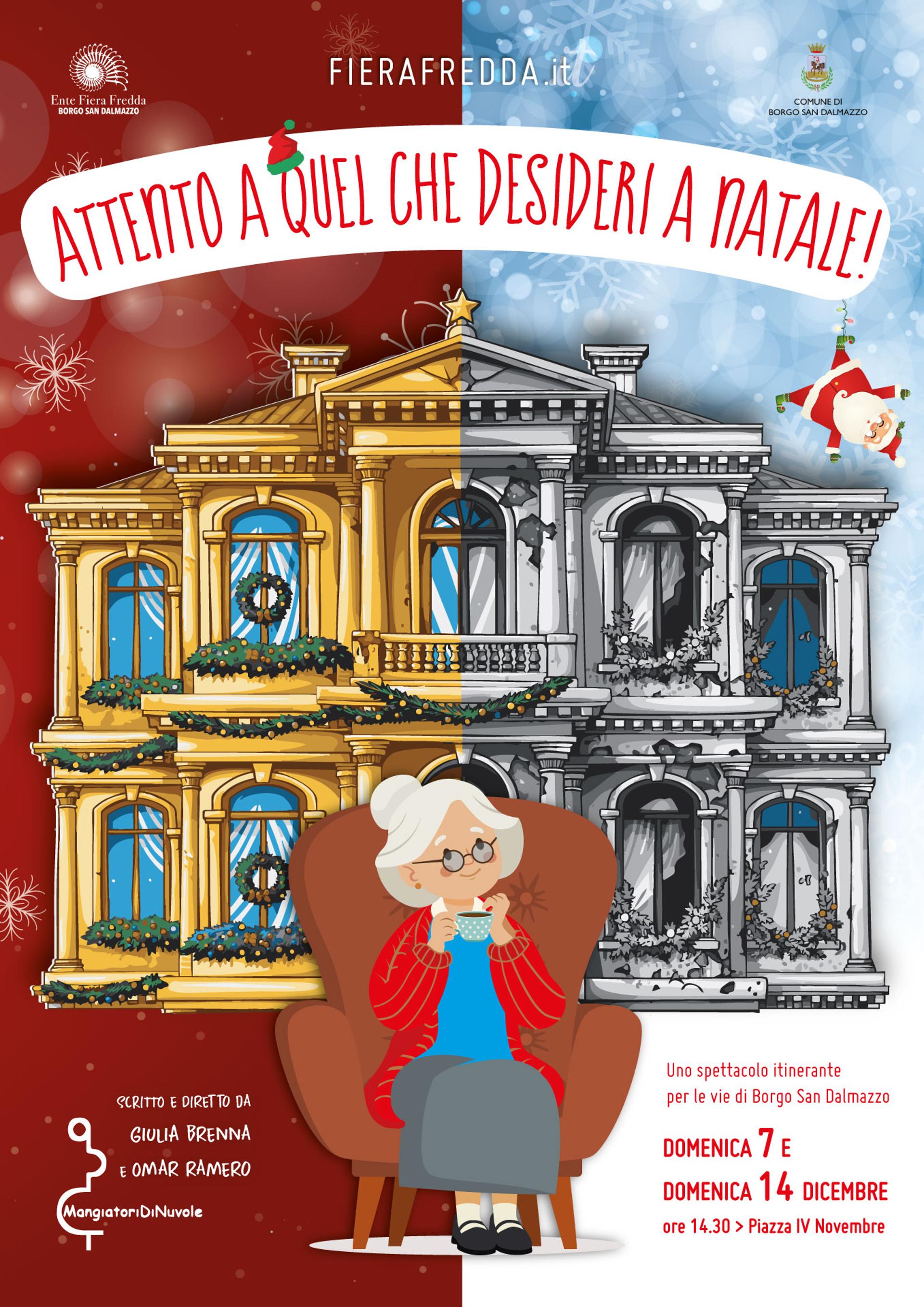 Domenica 7 e domenica 14 dicembre a Borgo San Dalmazzo, spettacolo teatrale itinerante per le vie del centro dal titolo "Attento a quel che desideri a Natale". Ingresso libero, ritrovo ore 14.30 in piazza IV Novembre.