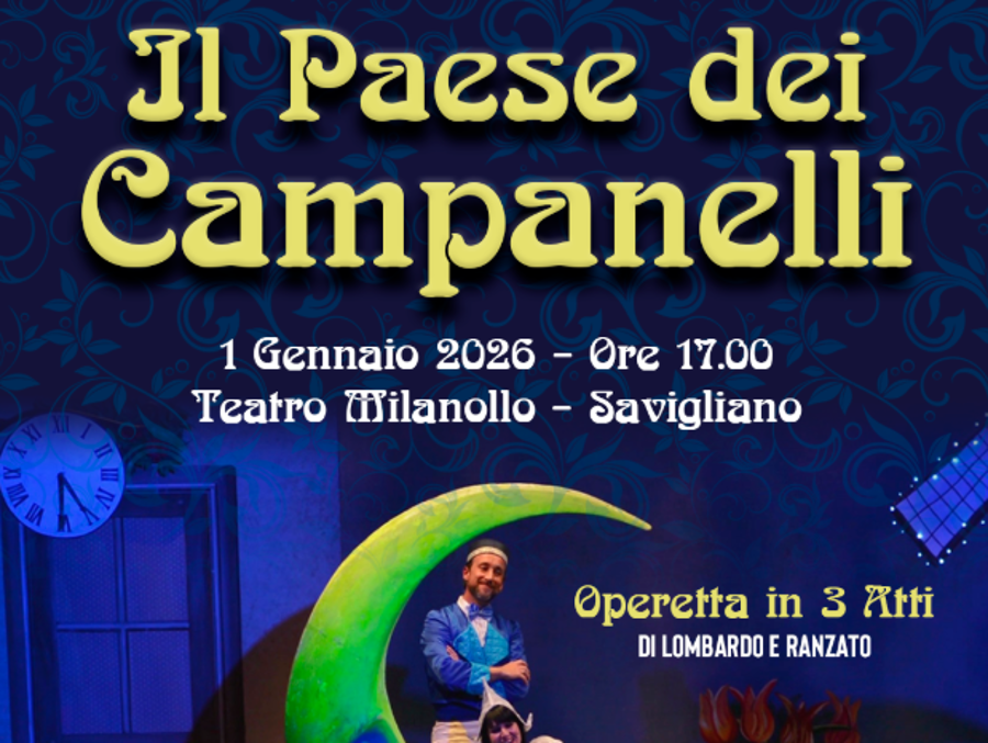 Giovedì 1° gennaio alle ore 17 presso il Teatro Milanollo di Savigliano si terrà il XIV Concerto di Capodanno: in scena l’operetta Il Paese dei Campanelli, proposta dalla Compagnia di Operette di Elena D’Angelo. Per informazioni e prevendita dei biglietti rivolgersi ai contatti indicati di seguito.